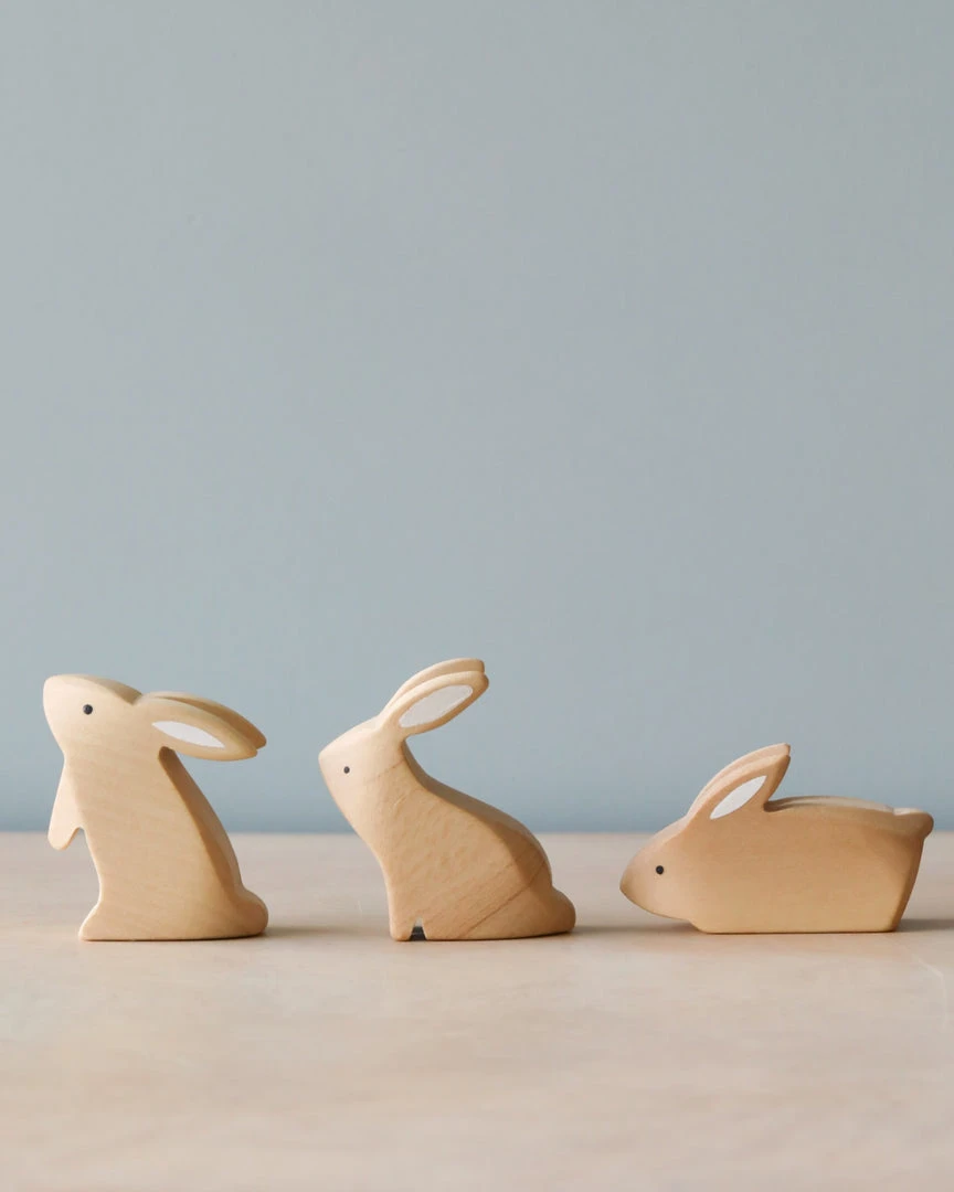Made in France and painted with non-toxic, child-safe paint. This set includes two bunnies.Â
