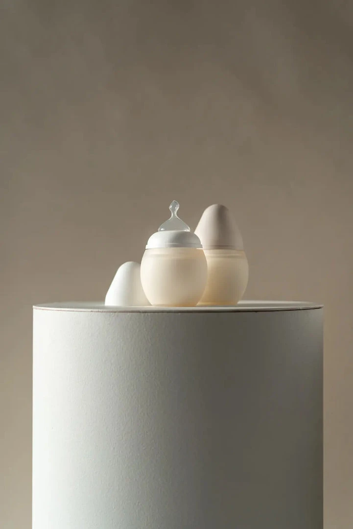 The baby bottle is made of pure silicone and new generation medical grade material. The Élhée BibRond does not contain bisphenol A (BPA), bisphenol S (BPS) or other substances that may harm the health of babies. Its unique and patented closure system excludes any risk of milk and its nutrients coming into contact with materials other than those of the silicone bottle and teat.