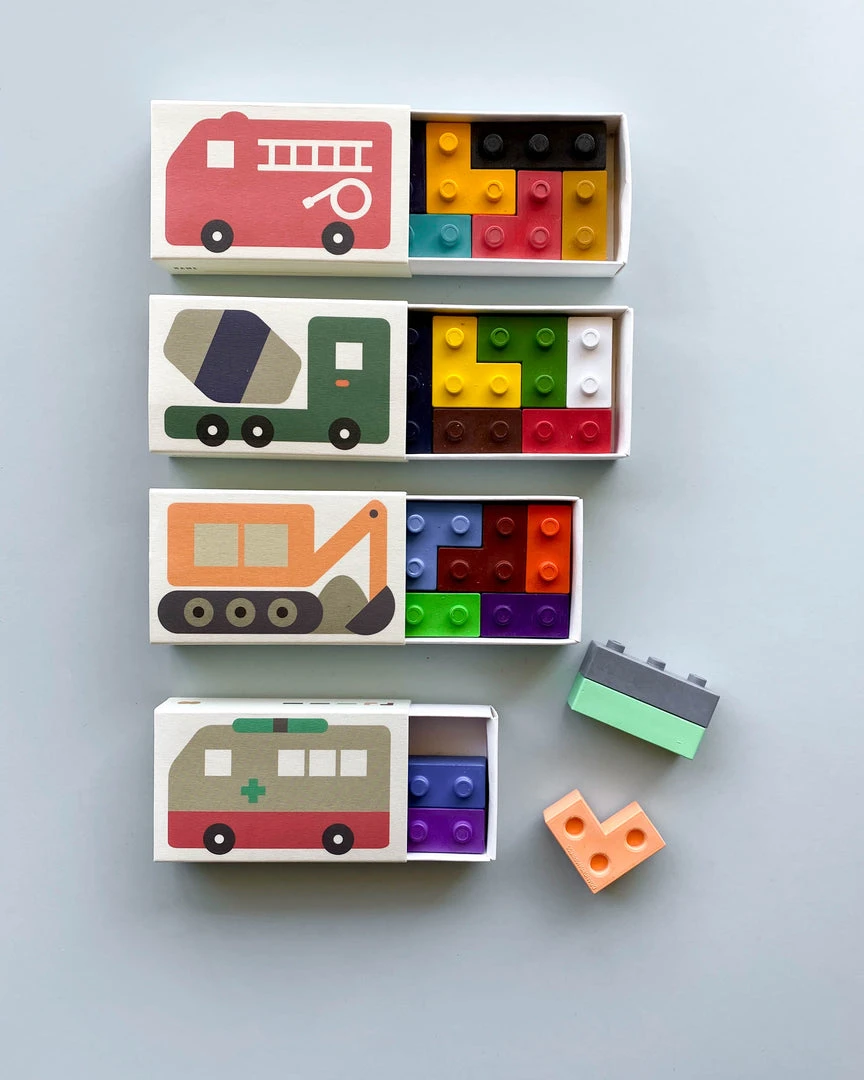 Made from natural bean wax, these lego like crayons are non-toxic and safe.Â