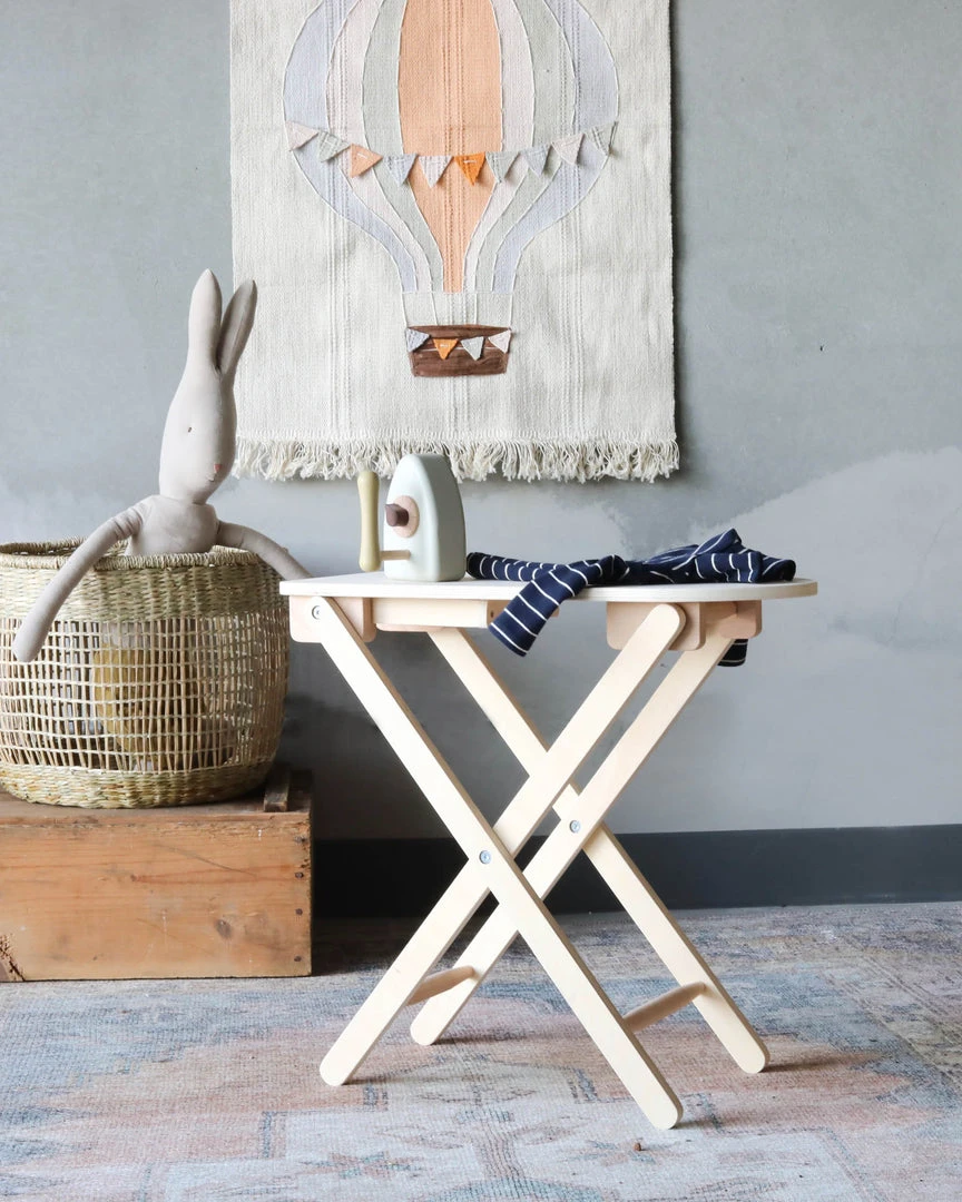 Let your little one practice house chores with this wooden iron and ironing board. Once done, the board can be folded for easy storage.