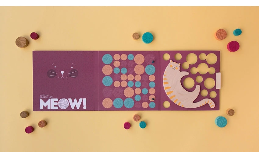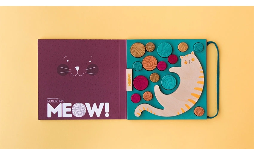 Play with this adorable kitten carrying all the skeins of wool without falling to the ground. Meow! is a wooden toy for the whole family!