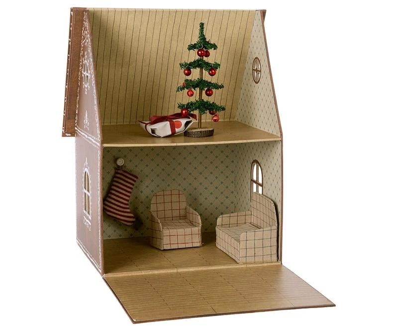 The Maileg Gingerbread House is designed for holiday surprises! Add your Advent gifts in the house and let your child decorate the rooms every Sunday when a new gift is opened. This house is the perfect size for micro Maileg friends and furniture.Â