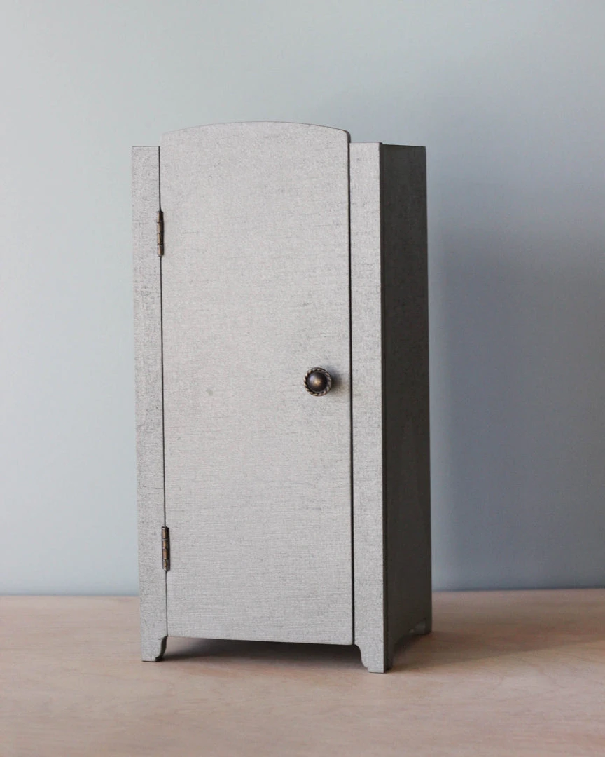This vintage looking closet is very nice and has beautiful printed details inside as well. The shelves inside will make sure the organizing play will begin.