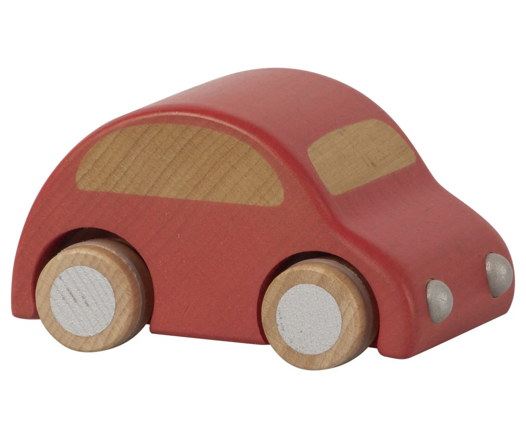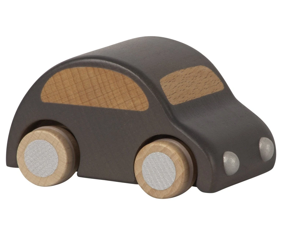 The design of this little wooden car is simple and clean. The car is in solid wood and has a pull back function.