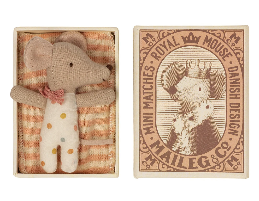 Box is made of cardboard, bedding is cotton, and polyester filling for the mouse.