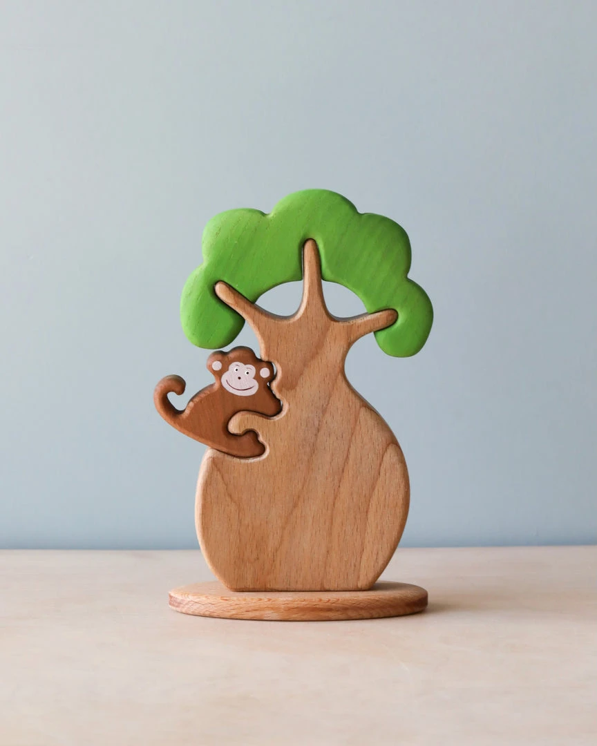 Beautifully handcrafted and hand painted with non-toxic paint, each tree comes with a removable monkey.Â