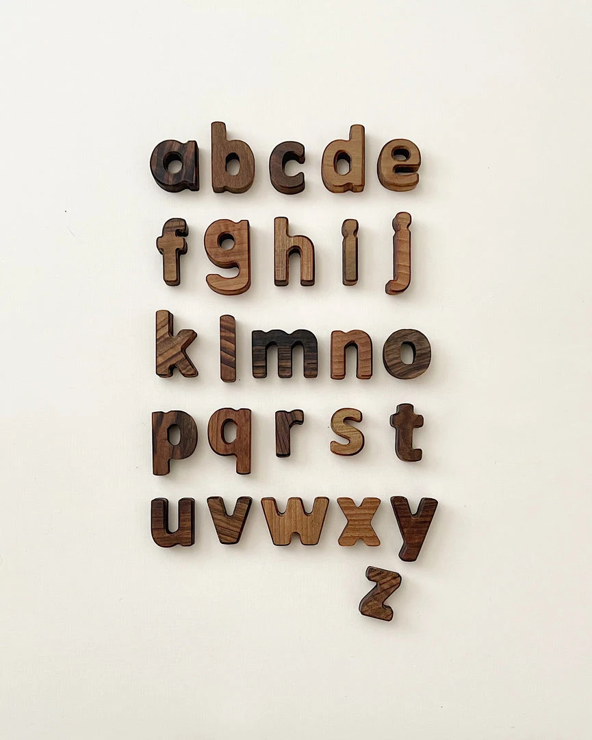 This set includes the lowercase alphabet and a storage bag. The letters are made in Turkey and are coated with natural oil.