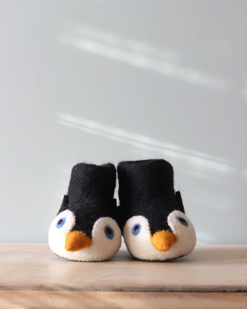 Handmade in Nepal, by artisan women who shape these slippers from wool, water and soap. The bottom of the slippers are made of suede.Â