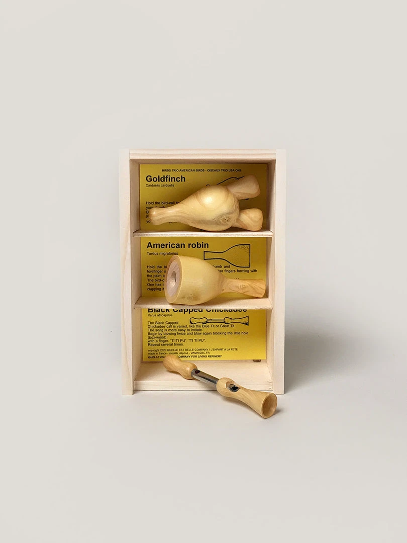 Quelle Est Belle company is an artisan bird call maker based in the Drôme region in France. Monsieur Francois Morel has been making these beautiful wooden bird calls since 1980. Each call is developed to carefully mimic real bird songs, helping you recognise the bird songs in their natural habitat and communicate with them. They are wonderful musical instruments for kids and grown ups alike.