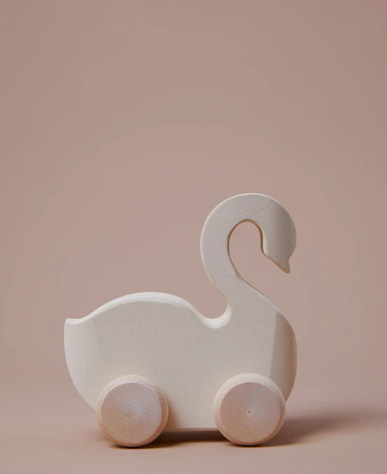 Handmade from linden wood and painted with non-toxic paint, this push toy measures approximately 5″ long.Â