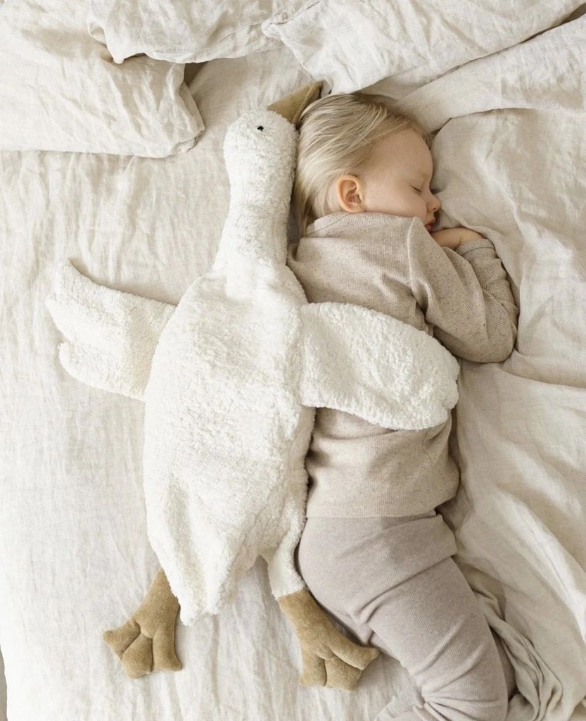Handmade in Germany by Senger Naturwelt, this cuddly Goose doubles as a gentle warming pillow. The head and feet are filled with lamb wool and the outer layer is made with organically grown cotton. The tummy features a removable bag filled with cherrystones. The bag can be warmed up in the oven at low temperature (do not microwave) or put it in the freezer to cool special parts of your body.