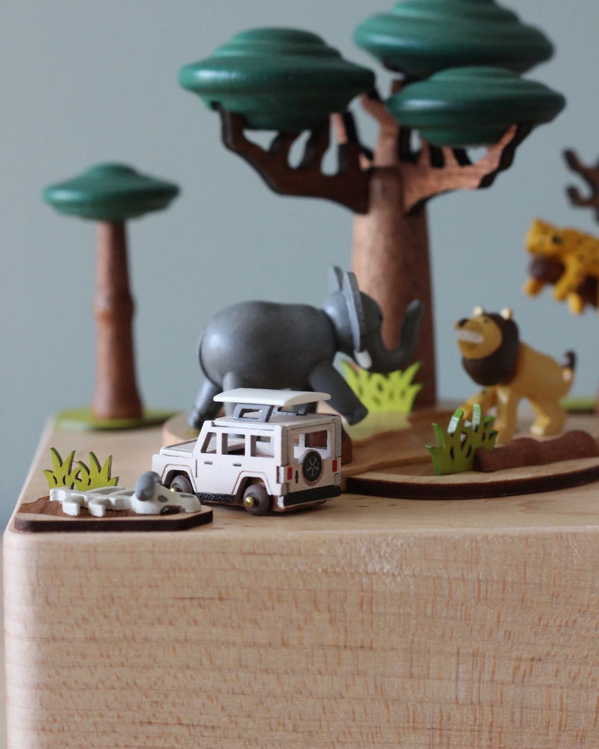 Combining nostalgia and a classic design, this hand cranked music box makes a great addition to any any room as a decoration on a shelf. The on/off toggle allows the music to start and turn off easily, while the clockwork mechanism enables the train to go around while the music is playing.